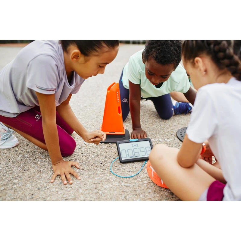 Compra en Decathlon Base Cronómetro Atletismo Kick & Run Un cronómetro revolucionario diseñado para que nuestros jóvenes atletas pongan a prueba su velocidad en recorridos con líneas idénticas de salida y de meta.