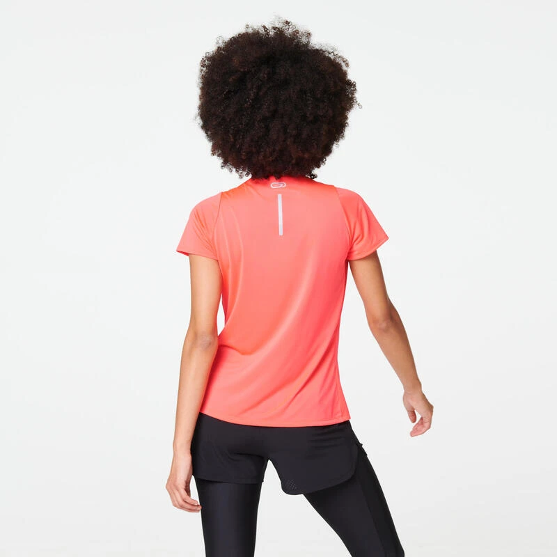 Compra en Decathlon Camiseta running manga corta transpirable Mujer Dry Cómoda y transpirable, esta camiseta será tu aliada perfecta para salir a correr.