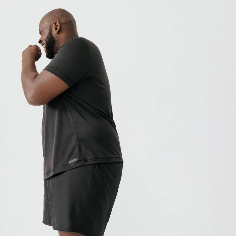 Compra en Decathlon Camiseta running transpirable hombre – Dry negro (de la 4XL a la 5XL) Nuestro equipo de diseño ha creado esta camiseta de running transpirable para hombre para mantenerte seco cuando sales a correr con tiempo cálido.