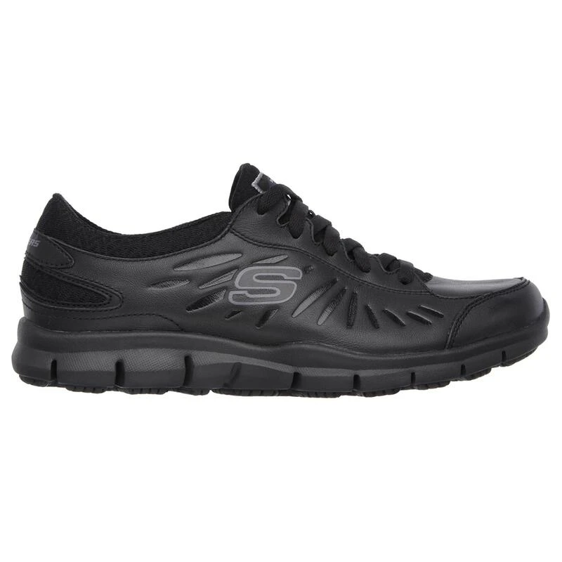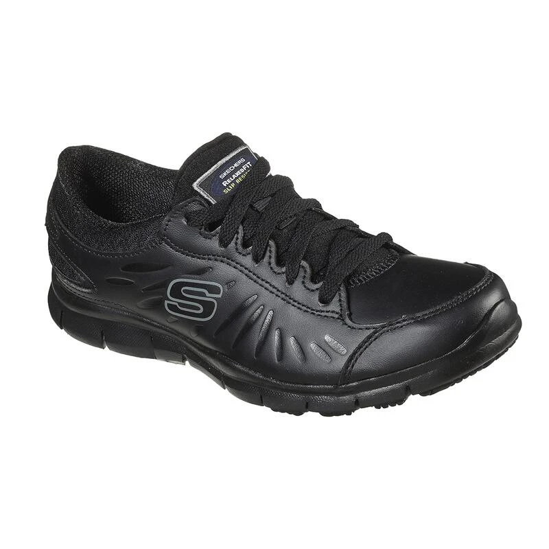 Compra en Decathlon Zapatillas Caminar Mujer SKECHERS Elred Sr Negro Zapatillas Skechers en piel, con cierre de cordones, que presenta una puntera redonda y una suela de goma de absorción de impactos y antideslizante.