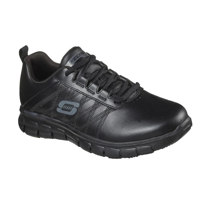 Compra en Decathlon Zapatillas Caminar Mujer SKECHERS Work Relaxed Fit Sure Track Negro Zapatillas en piel lisa Relaxed Fit® para un ajuste cómodo y amplio, plantilla recubierta y extraíble Memory Foam con amortiguación y media suela FlexSole flexible y ligera con absorción de impactos.